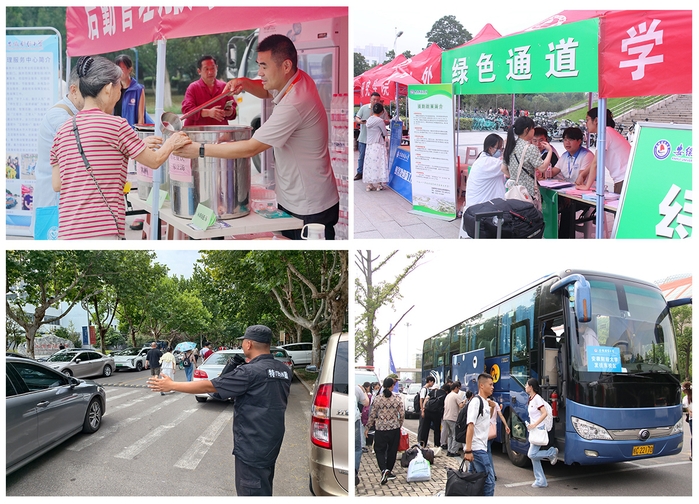 据悉,为了有序帮助新生完成报到,学校从接站点到报到点再到宿舍楼,严控细节,“一站式”服务,让新生暖心,让家长放心。学校在火车站设置新生接待站,安排多辆校车免费接送新生,组织两千余名学校教职工和大学生志愿者,帮助新生办理报到手续、搬运行李,帮助新生高效完成报到工作。学生处设立家庭经济困难学生“绿色通道”服务点,聘请“学生资助宣传大使”,现场提供奖助学金及助学贷款等业务咨询服务。安全管理处精心制定迎新安全保卫工作方案,涵盖校园巡逻、交通疏导、应急处置、信息沟通等方面,确保迎新工作有序进行。后勤管理服务中心提前谋划、精心部署,高标准、严要求推进饮食、宿舍、校园环境等各项工作落实落细,全力保障校园安全稳定。在报到当天设立家长休息区,提供各式冷饮、零食,以及创伤包扎、防暑等医护服务。