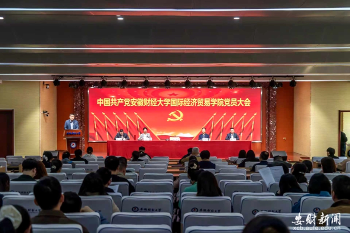10月22日下午,中国共产党安徽财经大学国际经济贸易学院党员大会在龙湖东校区求真楼一楼报告厅隆重举行。大会回顾总结了学院上一届党委的工作,明确了未来五年的发展目标和主要任务,并选举产生了新一届党的委员会和纪律检查委员会。学院全体师生党员参加大会。