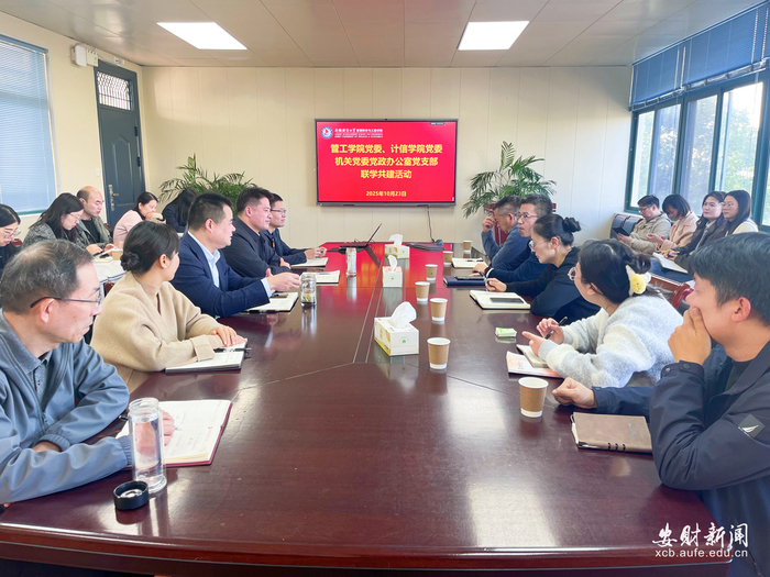 10月23日下午,管工学院党委、计信学院党委与机关党委党政办公室党支部在广学楼303会议室联合开展联学共建活动。本次活动以“强化协同联动,提升履职效能”为主题,通过业务培训和交流研讨相结合的方式,搭建跨部门学习交流平台,推动党建工作与业务工作深度融合。各单位党员代表以及工会委员、工会小组长参加此次活动。